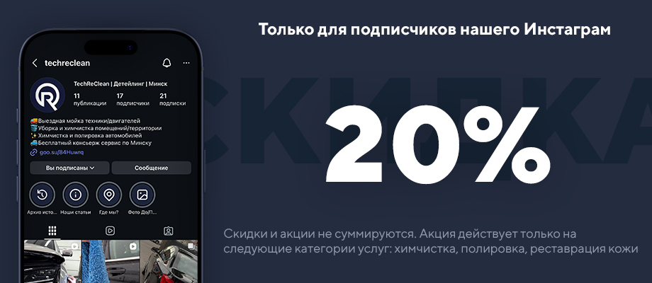 Для записи на обслуживание пишите в Директ Инстаграм или позвоните по нашему контактному номеру. Для получения скидки, всего лишь необходимо предъявить личный аккаунт социальной сети "Instagram", где указана подписка на наш профиль.
