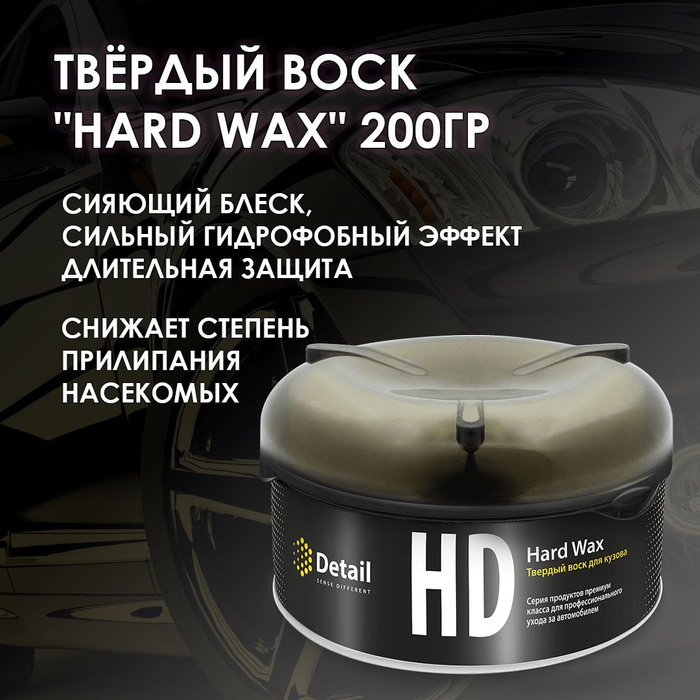 Твёрдый воск позиционируется как более бюджетная, но тем не менее, хорошая альтернатива керамическим покрытиям, после полировки или чистки кузова. Срок исполнения от 1 до 4 часов.